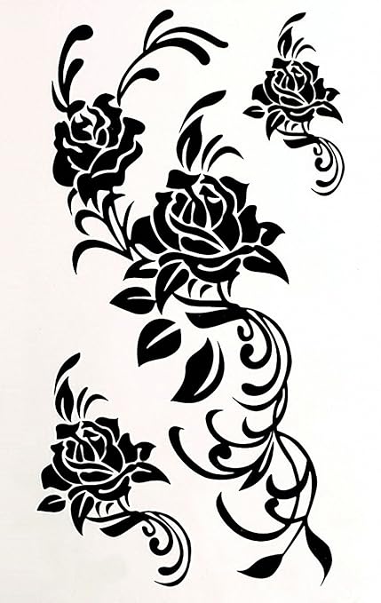 Mapofbeauty Beautiful Black Flower Rose Waterproof Temporary
