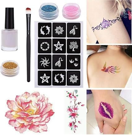 Amazon Com Elevin Tm Glitter Tattoo Powder Temporary Tattoo Body
